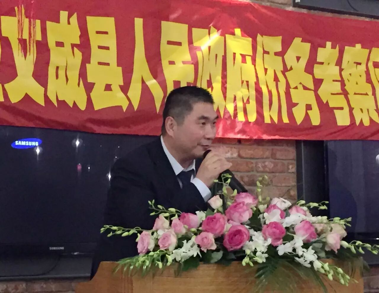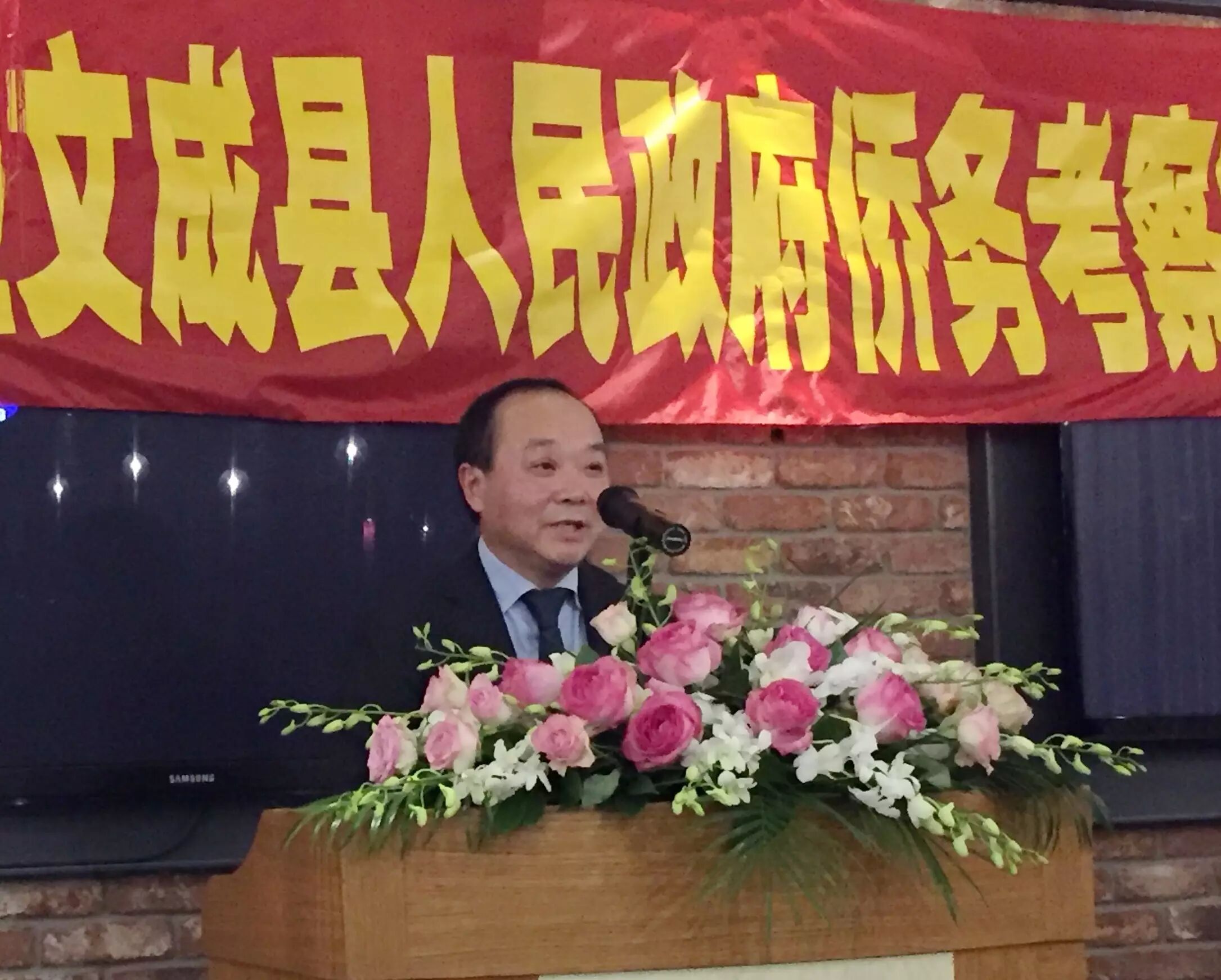 驻米兰总领馆王宏健领事代表总领馆致词。 座谈会现场气氛热烈,乡音乡情汇成共同的主题——建设家乡是海外乡亲共同的责任。