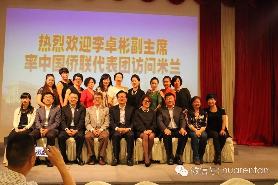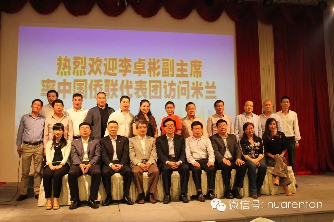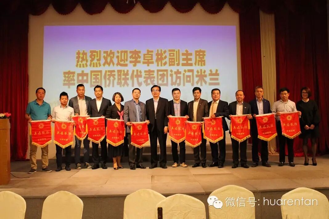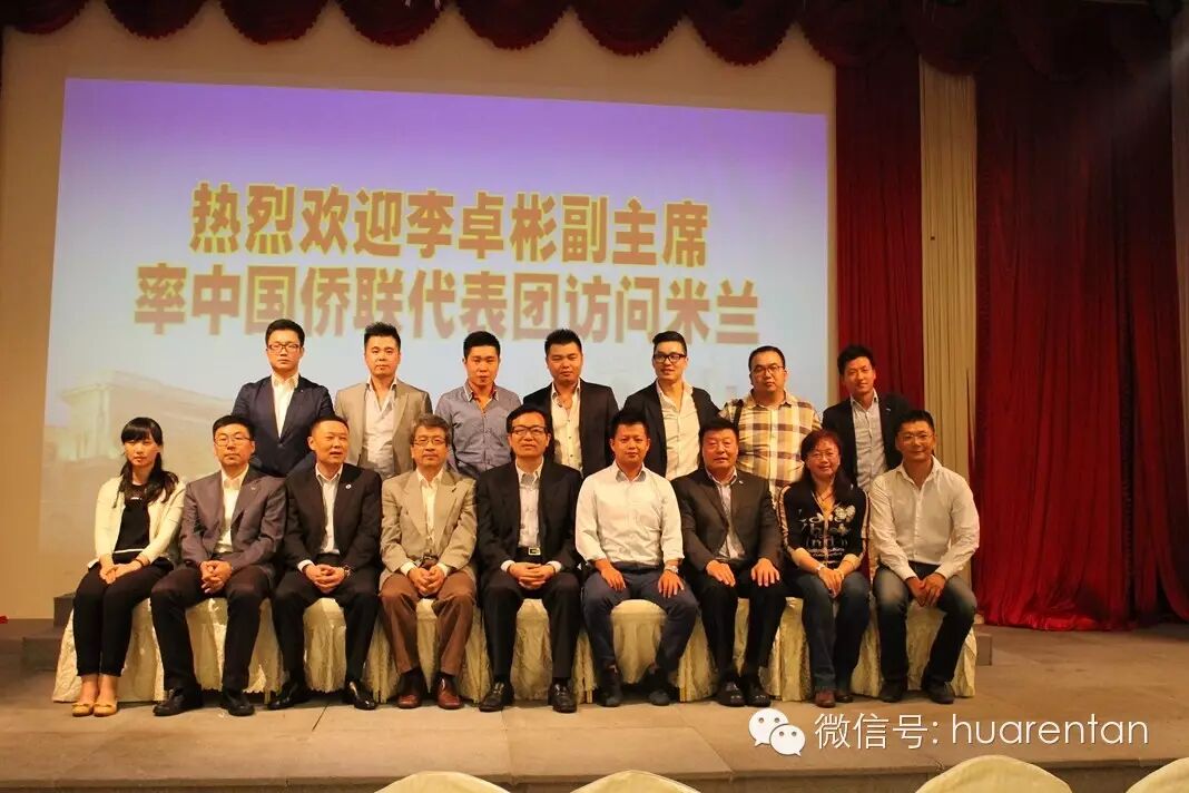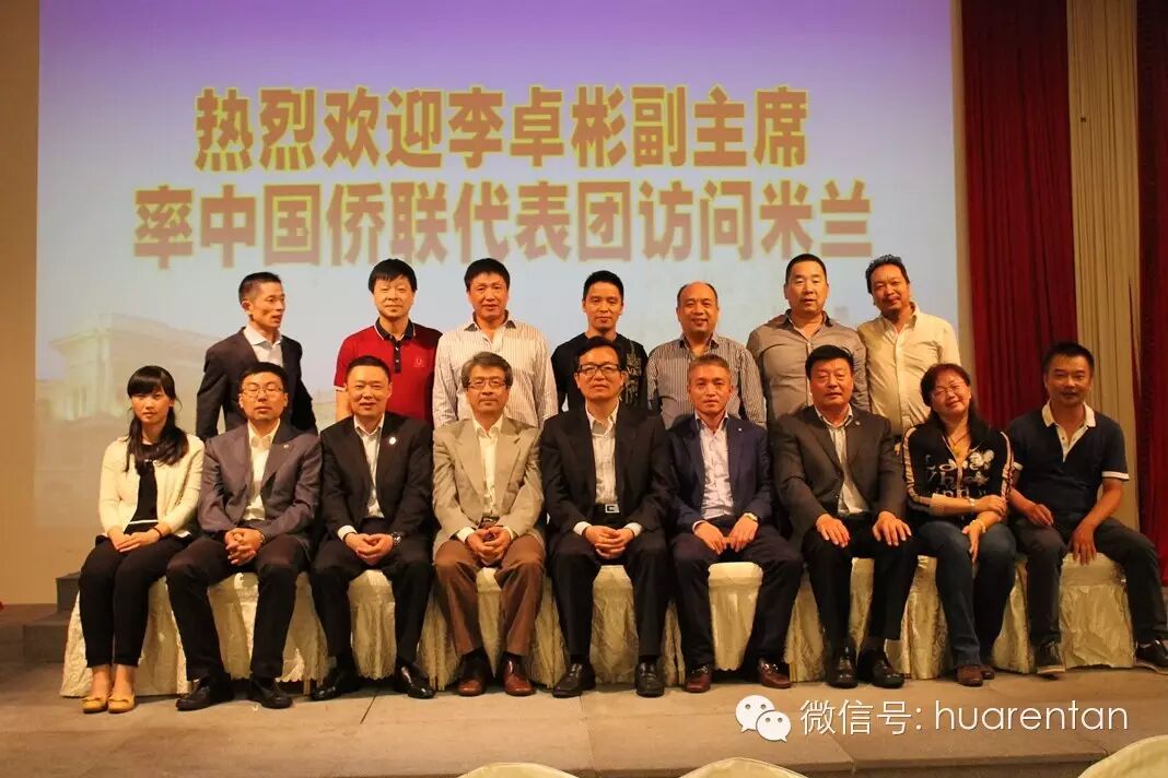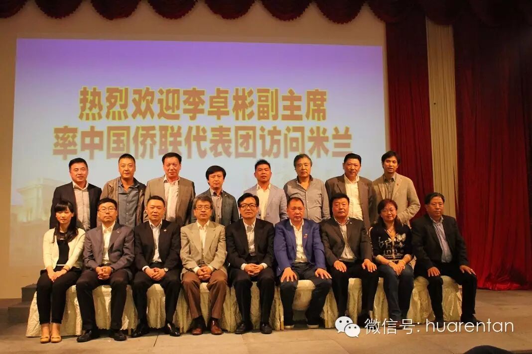意大利《华人谈》讯:欧华联合时报米兰分社报道,2015年8月24日晚8点,意大利北部14个兄弟姐妹侨团共同在米兰新希尔美食城,举办欢迎招待会,欢迎李卓彬副主席率中国侨联代表团访问米兰。中国驻米兰总领馆黄永跃副总领事和各兄弟姐妹侨团的侨领200多人出席了当晚的座谈和欢迎招待会。