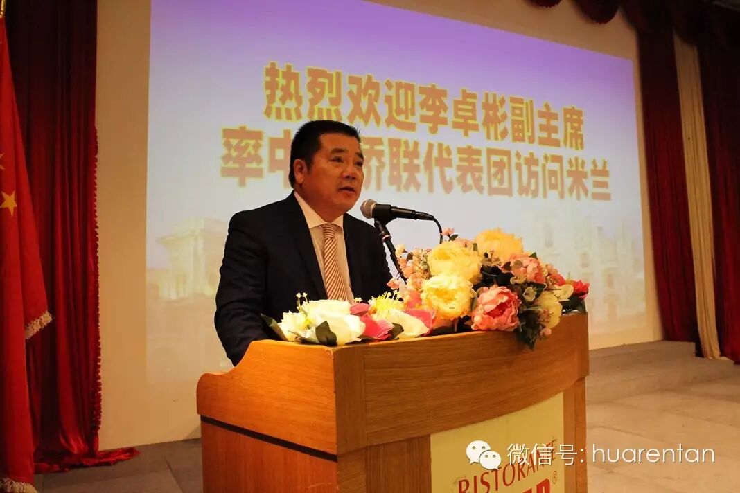 李卓彬副主席上台致辞:他在讲话中对米兰地区的侨团发展和建设给予充分的肯定,同时李卓彬副主席指出;海外华侨是当地居住国了解中国的窗口,他们为当地的经济发展和中国的文化交流做出了重大贡献。现在,中国政府提倡“一带一路”的重大战略决策,希望在座侨胞抓住机遇为实现“一带一路”的重大战略决策,做出你们的贡献。