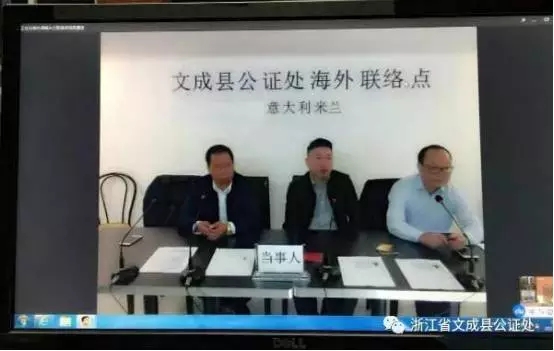 ( 图文来源 2017-10-31 温州侨联 ) 2017年10月30日,文成公证处通过意大利米兰海外公证联络点,为身在意大利的华侨赵某媛、赵某红、朱某怀放弃继承国内的房产进行了取证工作,为下一步这3位当事人的亲属在国内继承房产提取了有效证据。这种通过远程视频,当事人不用回国就能得到公证服务,是公证工作的创新之举,既节省了华侨的时间、精力成本,也提高国内亲属继承房产的效率,还维护了他们的合法权益。