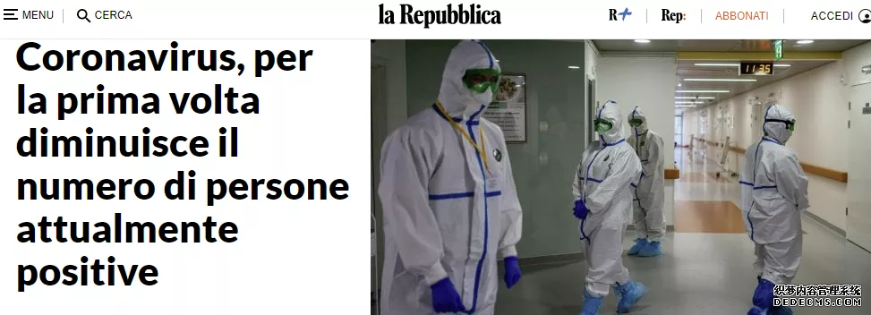 意大利卫生部技术和科学委员会成员、罗马杰梅利综合医院肺科主任里切尔迪说,医学界判断疫情的6个指标中,目前现有住院人数、重症患者人数、现有患者总数、不需要住院的居家隔离感染者人数和治愈病例数5个指标均出现了积极信号,尤其是20日意大利首次出现现有患者减少的情况,当下只有每日病亡人数还在400人以上这一点还“不符合人们的期望”。